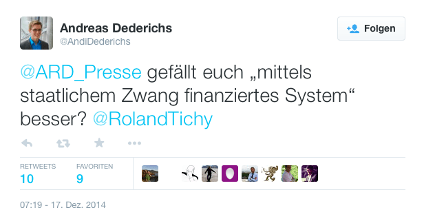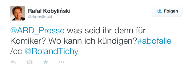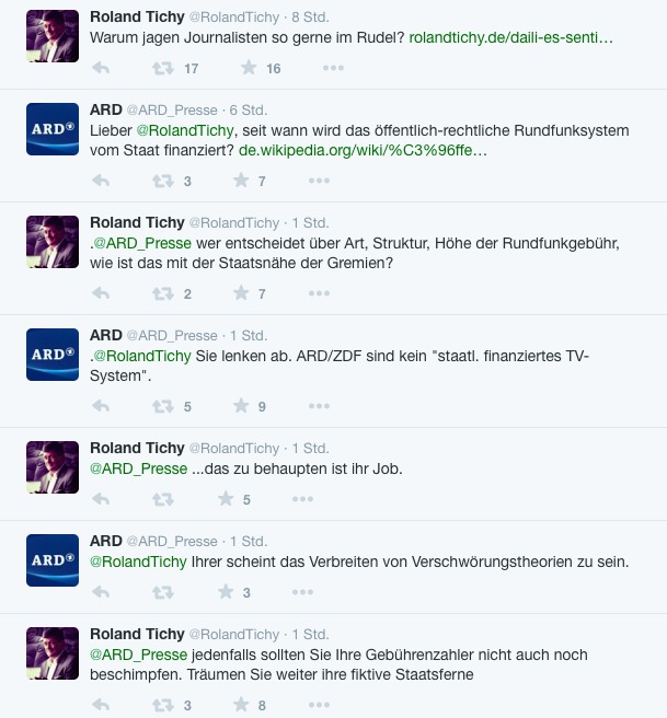 Twitter ist ein gefährliches Medium. Twitterer beissen zurück, wenn Unternehmen oder Pressestellen arrogant ihre Märchen verbreiten. Diese Erfahrung mußte am Mittwoch auch die Pressetelle der ARD machen. Am Anfang stand eine eher bürokratische Zurechtweisung von Roland Tichy. Er sprach von der besonderen Sorgfaltspflicht, die ein staatlich finanziertes Fernsehsystem sich auferlegen müsse, siehe Daili|es|sential zum sinkenden Vertrauen in Journalisten.