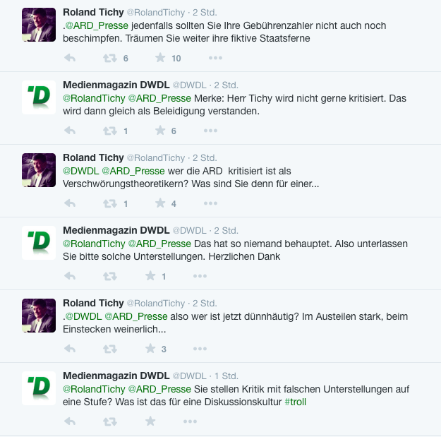 Das Medienmagazin DWDL eilt der ARD zu Hilfe. Erst mal eine Unterstellung, um gleich darauf eine Beleidigung nachzuschieben, nicht zu vergessen – sich selbst aber Unterstellungen zu verbitten: Und wer sich gegen DWDL wehrt, lebt verkehrt. Als Troll.
