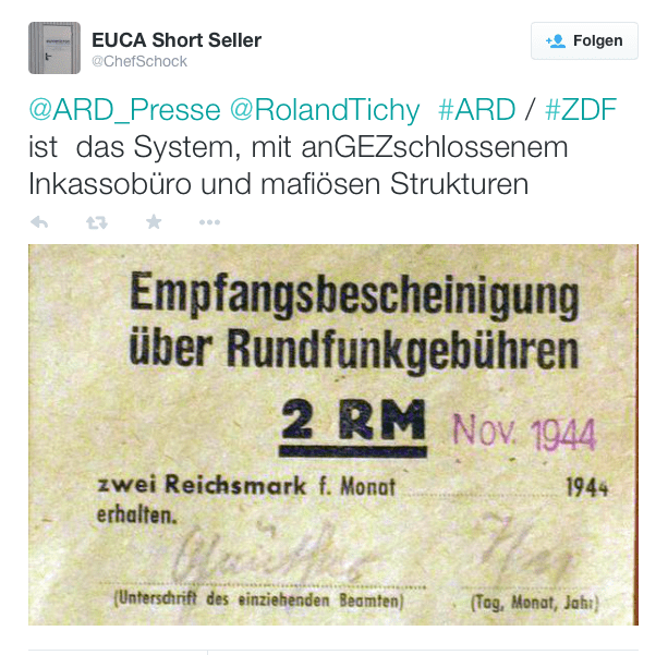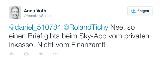 Und im Verlauf entdeckte die Twitter-Gemeinschaft eine gefährliche Besonderheit: Es sind die Finanzämter, die die „Gebühren“ eintreiben. Ist die Gebühr doch eine Steuer, mit allen Konsequenzen?