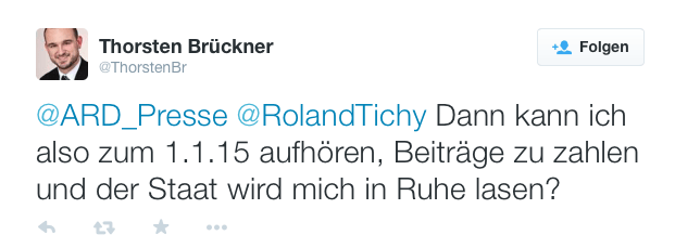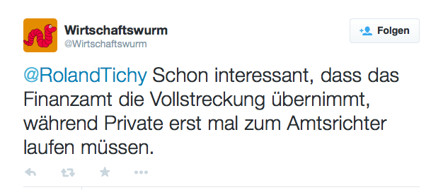 Und dann das mit den Finanzämtern: Doch die Twitter-Debatte entwickelte sich auch inhaltlich weiter: Offensichtlich werden die Gebühren nicht wie sonst vom Gerichtsvollzieher eingetrieben, sondern von den Finanzämtern. Wegfahrsperren beim Auto, ja sogar ein halbes Jahr Haft können die Konsequenzen sein.