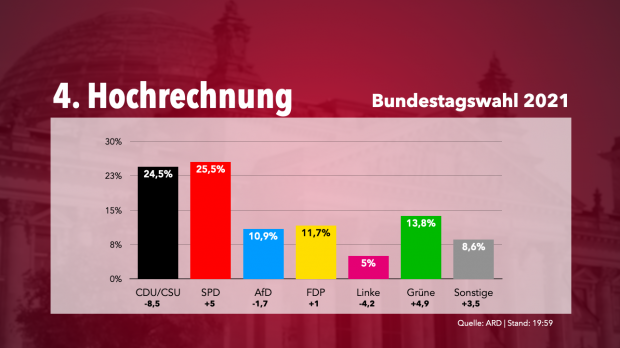 Die Zahlen sind noch nicht belastbar. Ob die Linke im Parlament vertreten sein wird, ob die SPD oder die CDU/CSU die Nase oder besser die Nasenspitze vorn hat, wissen wir noch nicht.