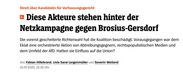 > Alleine schon nur, wie hier doch vonseiten den aus dem AltparteienKARTELL kommenden -vor allem rotgrünen- „Wir-Demokraten-der-Mitte“ und auch von Frauke Brosius-Gersdorf höchstselbst vehement und mit Gerickse, Wortspielereien und Aufruf an das feministische „Weibsvolk“ versucht wird damit die mehr als nur linkslastige Brosius-Gersdorf einen der höchsten Richterstühle besetzen kann, zeigt doch ganz klar und deutlich, dass es bei dieser „Richterin“ und ihrer möglichen Tätigkeit am BGH um weit mehr als nur um dies Besetzung eines Richteramts gehen muß.