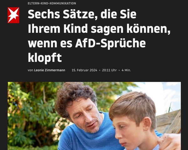 Wie jedes Jahr entdecken deutsche Medien und sonstige Plattformen zur Bevölkerungsverbesserung zum Jahresende die Familie. Brigitte bietet einen „Notfallkit zu Weihnachten“ an, der „7 Dinge“ enthält, „die du erwidern kannst, wenn der rechte Onkel ausfallend wird“. „Weihnachten ist kein politikfreier Raum“, mahnt die überwiegend staatlich finanzierte Amadeu Antonio Stiftung. Anderswo gibt es guten Rat, was Eltern dem Kind antworten sollen, „wenn es AfD-Sprüche klopft“.