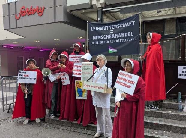 Kinderhandel, Menschenhandel, Ausbeutung, Herabwürdigung der Frau zum Materiallager und Inkubator: Vor den Sartory-Sälen protestieren Feministinnen gegen die Messe. Sie hatten bei der Stadt Köln vorgesprochen, und, nachdem das Ordnungsamt die Messe nicht untersagt hatte, einen Eilantrag vor Gericht eingebracht. Das Ergebnis: Ein „Teilerfolg“, sagt Monika Glöcklhofer vom Verein Frauenheldinnen. Den Veranstaltern wurden Auflagen vorgeschrieben, Vertragsanbahnung ist nicht erlaubt.