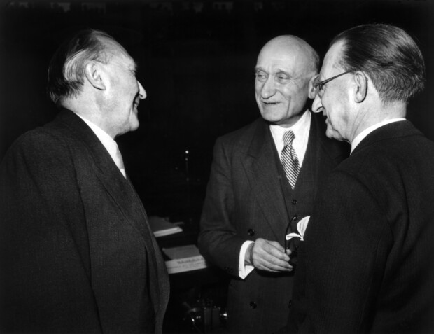 Adenauer, Schuman und de Gasperi am Rande einer Sitzung des Europarats Published on 20. November 2024 in Die EU gegen das ChristentumFull resolution (620 × 477) Next → Bundeskanzler Konrad Adenauer (l) im Gespräch mit dem französischen Außenminister Robert Schuman (M) und dem italienischen Außenminister Alcide de Gasperi (r) am Rande einer Sitzung des Europarats am 10.12.1951 in Straßburg