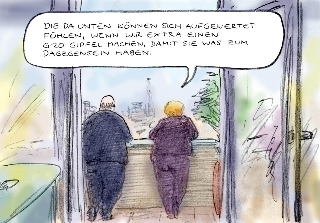 Es gibt Anlässe, da passt so gar nichts zusammen. Der G20-Gipfel in Hamburg ist so ein Anlass. Er zeigt demonstrativ die Lächerlichkeit der deutschen Politik und ihrer Akteure, die als Kulisse die Krawalle erst ermöglichen.