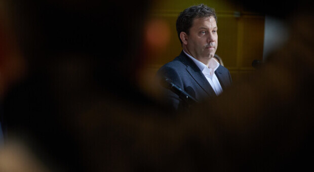 Lars Klingbeil steht mit dem Rücken in der Wand