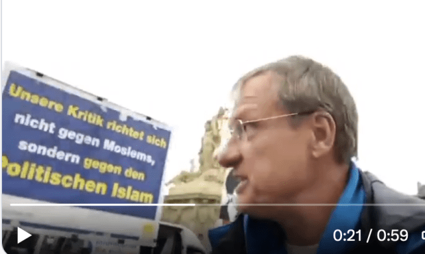 In keinem der Medienbeiträge zu Mannheim kommt eine direkte Aussage Stürzenbergers vor. Es existiert eine Videoaufnahme seiner Bewegung, die ihn ganz zum Beginn der Veranstaltung in Mannheim zeigt. Er spricht in die Kamera und geht an aufgehängten Plakaten vorbei; auf einem steht der Satz, die BPE richte sich gegen den politischen Islam, nicht gegen einzelne Muslime. Das kann jemand natürlich für selbstverharmlosende Propaganda halten. Aber dafür müsste es überhaupt erst einmal gezeigt und erwähnt werden.