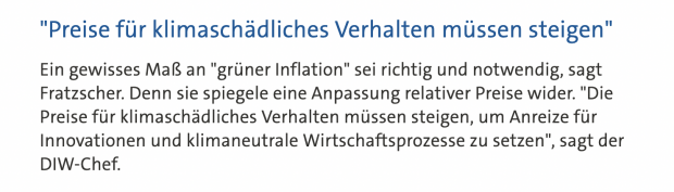 Aber solche populistischen Vorschläge bekämpfen die Sonnendeckbewohner selbstredend genauso energisch wie den Klimawandel und die soziale Ungerechtigkeit. Vielleicht noch ein bisschen energischer. Außerdem heißt es bei Brecht, als ob er schon unsere Qualitätsmedien gekannt hätte: „Die im Dunkeln sieht man nicht.“ Bei Twitter nicht und auch nicht bei „Anne Will“. Und selbst, wenn es ab und zu eine Reportage über die Minderprivilegierten in die Zeit schafft, dient sie vor allem dazu, höhere Steuern zu begründen, und nicht etwa, Steuern für Bezieher niedriger Einkommen und speziell die Steuer auf Benzin und Strom zu senken. Das würde nämlich nur falsche Anreize setzen. Dafür gibt es die entsprechende wissenschaftliche Absicherung durch den Chef des DIW Marcel Fratzscher via Tageschau: