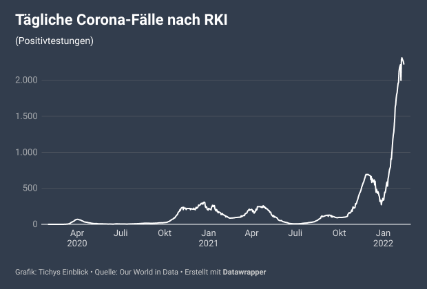 Die vom RKI gemeldeten Corona-Fälle (Positivtestungen) sinken seit einigen Tagen, der Höhepunkt der Omikron-Welle dürfte überschritten sein.