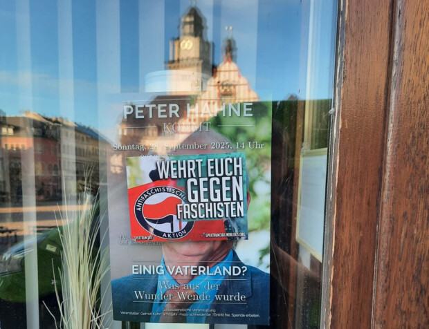 Die Reaktionen auf die Ermordung von Charlie Kirk sind ein Paradebeispiel für die tief sitzende Spaltung unseres Volkes. Seitdem finden sich auf vielen meiner Plakate geheimnisvolle „Aufkleber“ von den Leuten, die der sächsische CDU-Innenminister Schuster bei einer Anti-Rechts-Demo in Bautzen „meine wichtigsten Mitarbeiter zur Rettung der Demokratie“ nannte.