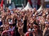 Erdogan selbst lässt sich auch gern mit einem hand-gemachten Symbol ablichten. Bei diesem Zeichen werden die vier Finger in die Höhe gestreckt und der Daumen auf die Handfläche geknickt: