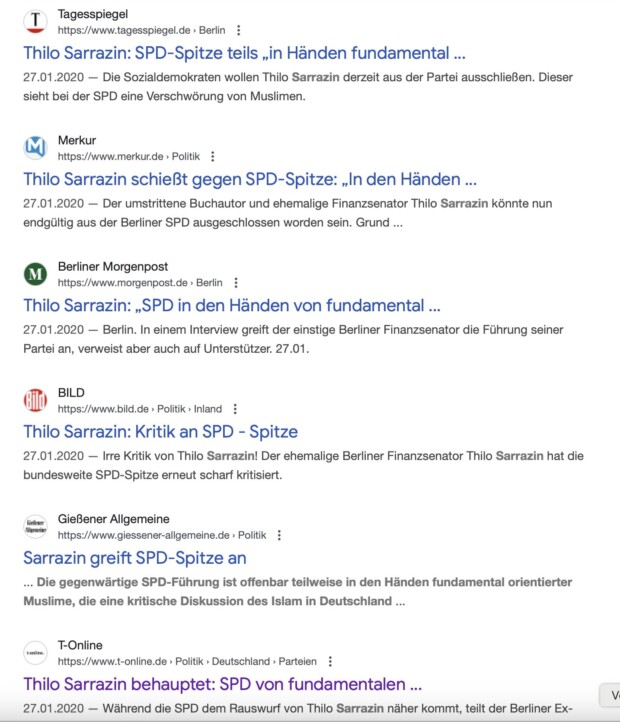 In einem vielbeachteten und vielzitierten Interview von Thilo Sarrazin mit Tichys Einblick im Januar 2020 sagte der Bestsellerautor: „Die gegenwärtige SPD-Führung ist offenbar teilweise in den Händen fundamental orientierter Muslime, die eine kritische Diskussion des Islam in Deutschland grundsätzlich verhindern wollen.“