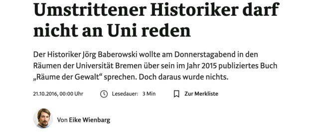 In der Vergangenheit konnten außerdem Veranstaltungen an mehreren Universitäten wegen angedrohter Störaktionen nicht stattfinden, beispielsweise ein Vertrag des Historikers Jörg Baberowski an der Universität Bremen, ein Auftritt des Polizeigewerkschaftlers Rainer Wendt an der Universität Frankfurt und eine populärwissenschaftliche Vorlesung der Biologin Marie-Luise Vollbrecht über den Unterschied zwischen biologischen Geschlechtern (zwei) und Geschlechtsrollen (variabel) an der Humboldt-Universität.