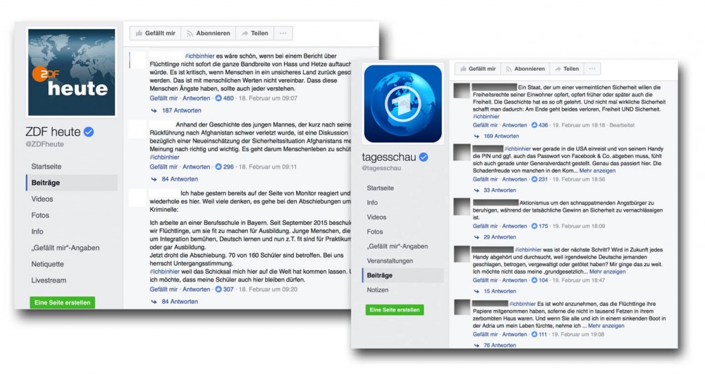 Screenshots: Facebook ZDF heute, tagesschau