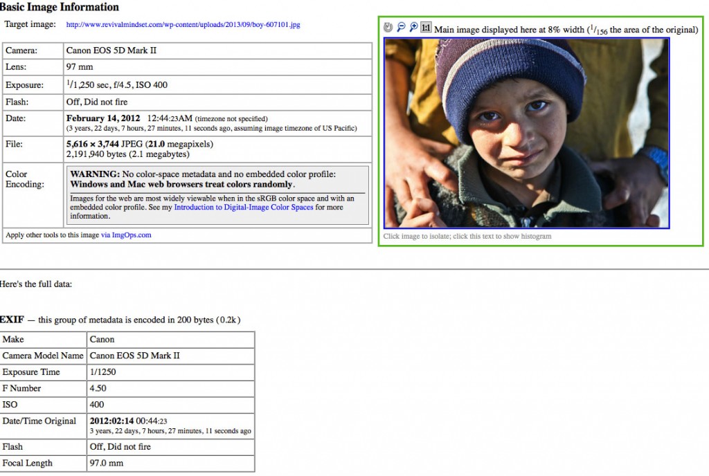 Dort hochgeladen vor drei Jahren, wird das Bild des Kindes in unterschiedlichen Auflösungen zum Download angeboten. Sämtliche Daten von Kameratyp über Brennweite bis Verschlusszeit und Aufnahmedatum stimmen mit den EXIF-Daten der ersten Fundstelle überein. Die Suchbegriffe, mit denen das Foto versehen ist (»Junge, schlecht, Angst, traurig, Person, Kinder, Krieg, Afghani«) bieten zumindest einen gewissen Rückschluss auf den Zusammenhang, in dem es aufgenommen wurde. Vertrieben wird das Foto unter einer CC0-Lizenz (Nachfolge-Lizenz der früheren Public Domain); ausdrücklich beinhaltet diese Lizenz beinhaltet die kommerzielle Nutzung, ein Bildnachweis (der üblicher Weise auf Bildautor und/oder die Bildquelle verweist) ist nicht erforderlich.
