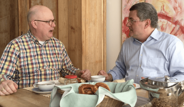 Achim Winter und Roland Tichy sorgen sich nicht, sie leben. Narzissen und Tulpen färben die Natur. Auf zum Frühlingsspaziergang.
