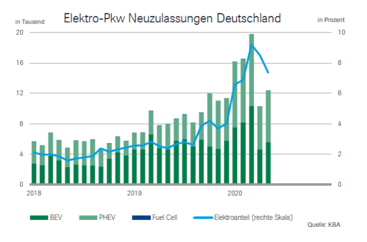 Im Ergebnis überwiegt am Markt für Elektroautos in Deutschland nach wie vor eine große Zurückhaltung. Wenn E-Autos nachgefragt werden, dann vor allem wegen der staatlichen Fördermaßnahmen, und wenn schon, dann mit steigender Tendenz aus Reichweitenangst als Plug-In-Hybride, also mit zusätzlichem Tank und Verbrennermotor.
