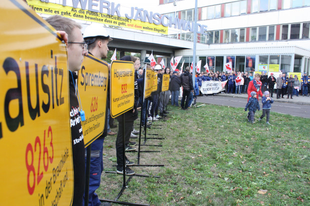 Mit einer Mahnwache vor Ort zeigten Kumpels und Kraftwerker ihren Protest, sowohl vor dem Kraftwerkstor als auch vor den Tagesanlagen des Tagebaus (siehe Bilderstrecke unten). Unterstützt wurden sie von Kommunalpolitikern des Amtes Peitz, der IG BCE, einem Staatssekretär des brandenburgischen Wirtschaftsministeriums und – Berichterstattung heißt auch, vollständig zu berichten – AfD-Politikern aus Stadtverordnetenversammlung Cottbus, Kreistag, Landtag und Bundestag. Prominente Vertreter jetziger und ehemaliger Volksparteien, revolutionärer Linksparteien oder der FDP waren nicht an Ort und Stelle.