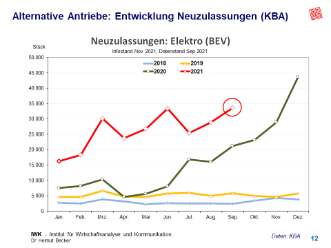 Nach Angaben des KBA in Flensburg zeigte sich in den ersten 10 Monaten 2021 am deutschen Markt für alternative Antriebe folgendes Bild: