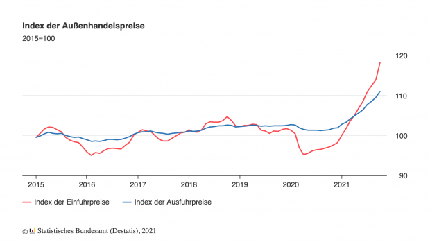 aussenhandelspreise Published on 26. November 2021 in Importpreise steigen extrem stark – vergleichbar mit der Ölkrise von 1980Full resolution (620 × 349) Next →
