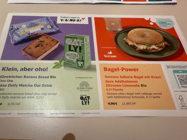 Für den „Veganuary“ wurden übrigens nicht nur neue Speisekarten gedruckt, sondern auch Flyer als Tischdecken. Wie hübsch.